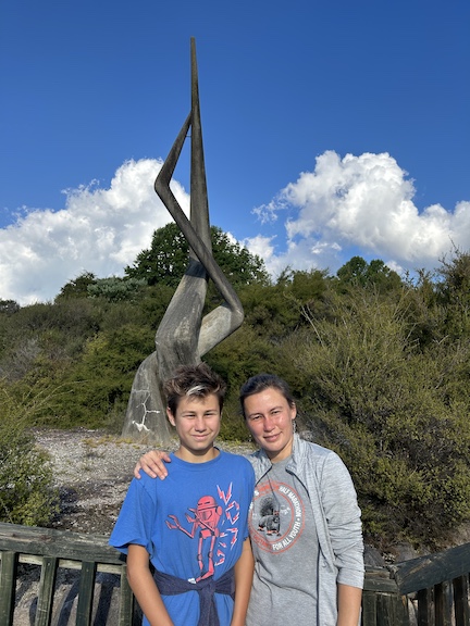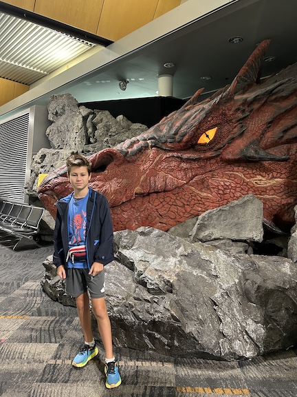 Just hopped on a flight from Wellington to Rotorua, NZ. Gave the dragon at the airport a heartfelt goodbye—no tears, just a little misty-eyed—and off we went.